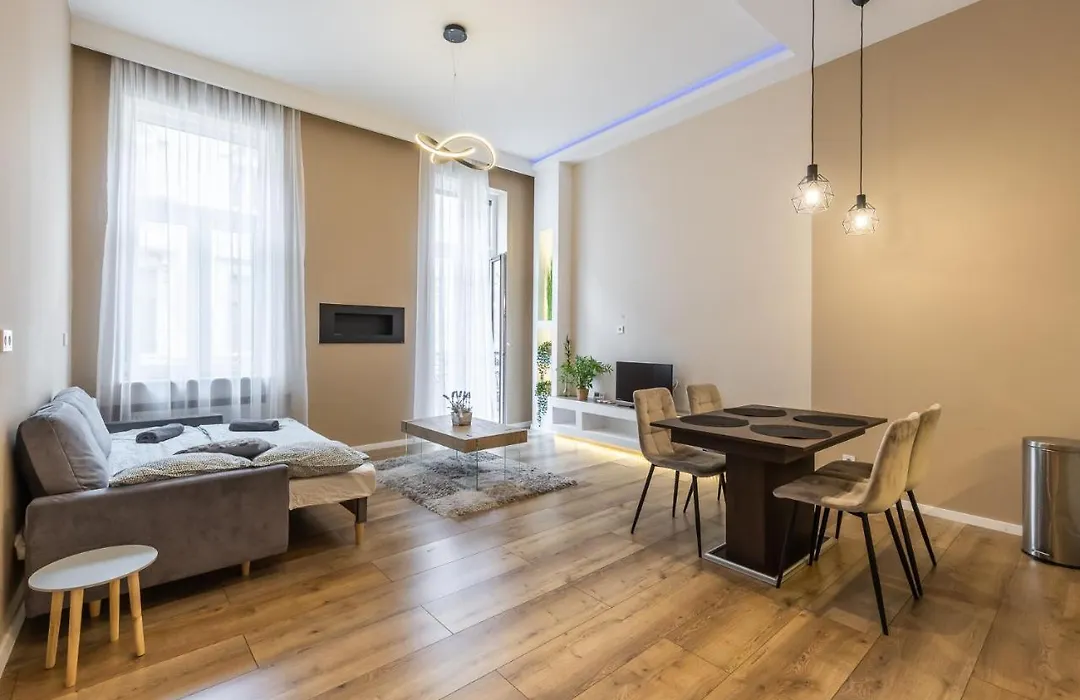 Csengery Deluxe Home With Balcony van 80 m² ligt op 5-minuten rijafstand van de Kettingbrug. Dit appartement met een terras is binnen enkele minuten van het Terror Háza Múzeum gelegen.